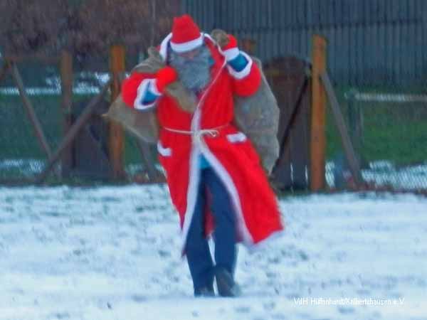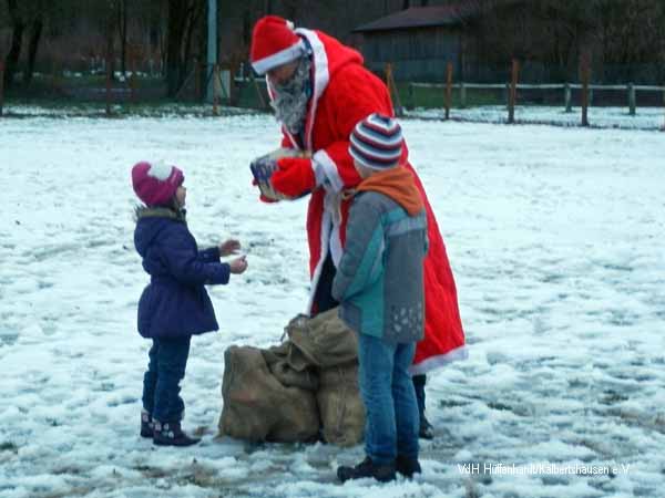 Die Kinder und so mancher Vierbeiner machte große Augen. Für alle hatte der bärtige, in rot gekleidete „Riese“ etwas dabei.