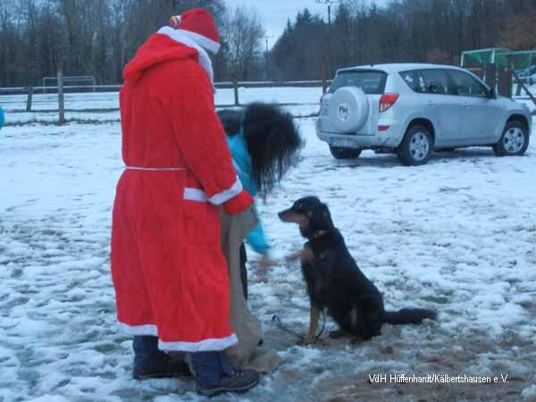 Bevor jedoch die Hundeführer/innen ein Geschenk aus dem Sack holen durften, mussten sie mit ihren Hunden einen kleinen Trick oder ein Kunststück zeigen.